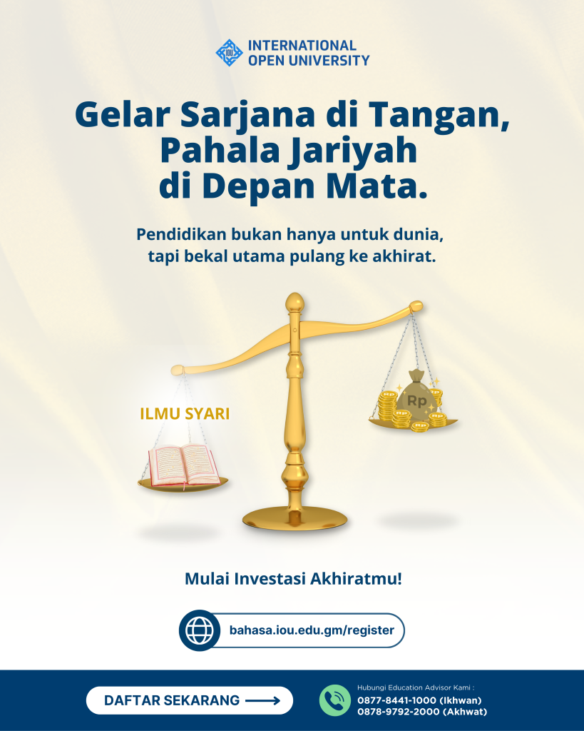 Di era digital ini, kesempatan untuk belajar semakin terbuka lebar. Kamu bisa memperdalam pemahaman Islam, psikologi, ekonomi syariah, dan banyak bidang lainnya langsung dari rumah, dengan panduan dosen dan kurikulum Islam internasional.🌿 Mari jadikan ilmu sebagai amal jariyah yang tak pernah padam.