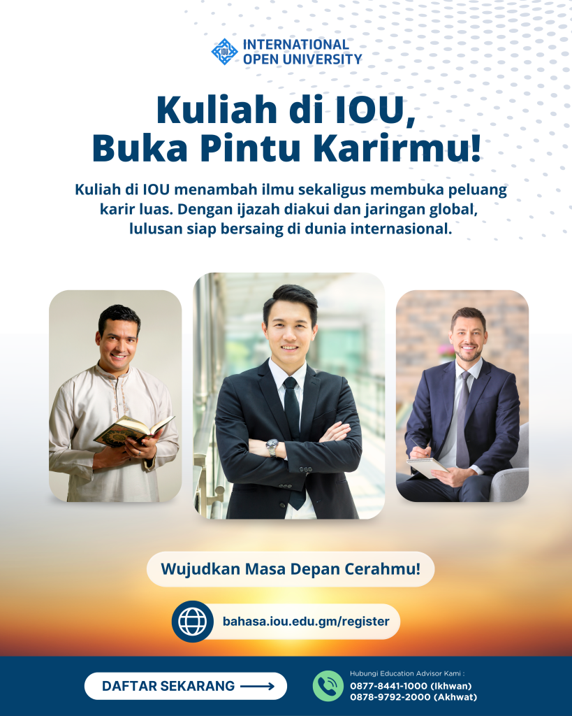 Program-program yang disediakan mulai dari Islamic Studies, Arabic, Psikologi, hingga Business Management dirancang untuk menjawab kebutuhan dunia kerja modern. Kurikulumnya terstruktur, berbasis modul, dan dapat diakses kapan saja. Ini menjadikan IOU pilihan tepat bagi pekerja, pelajar, maupun siapa pun yang ingin memperkuat kompetensinya tanpa harus meninggalkan aktivitas utama.
