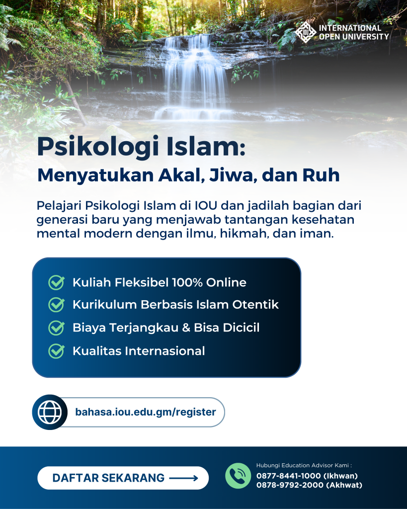 Maka, jangan sia-siakan keutamaan ini. Jadikan hari Jum’at sebagai langkah awal Anda menapaki perjalanan menuju pemahaman Islam yang lebih mendalam dan terarah. Jelajahi program Bachelor of Islamic Studies kami di International Open University, sebuah program sarjana online yang fleksibel dan terpercaya, dirancang untuk membantu Anda mempelajari ilmu syar’i secara mendalam, dengan kurikulum berstandar internasional dan pengajar ahli di bidangnya. Raih ilmu, raih berkah, dan wujudkan impian Anda menjadi generasi yang berilmu dan berakhlak mulia! Yuk Jelajahi program Bachelor of Islamic Studies kami di https://bahasa.iou.edu.gm/stream/bais/